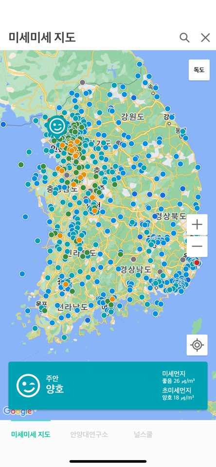 주말에 외출하는 것이 겁납니다. 외출 전 오늘의 실시간 미세먼지를 확인하는 것이 습관이 되었습니다.