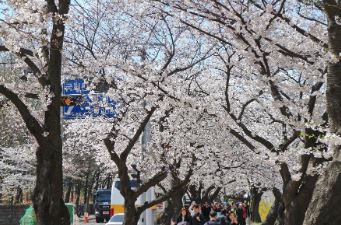 벚꽃축제 기간에는 차량 통제로 도로를 거닐며 양 옆으로 서로 이어진 벚꽃 나무를 볼 수 있습니다. 벚꽃들이 머리 위로 터널을 만들어 벚꽃 터널을 지나는 느낌이 들고 타이밍을 잘 맞춰 도로 가운데에서 사진을 찍으면 정말 예쁜 인생샷을 남길 수 있습니다.