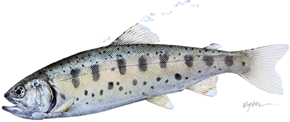 산천어는 매우 수질이 좋은 1 급수에 살고 있으며 유선형의 몸으로