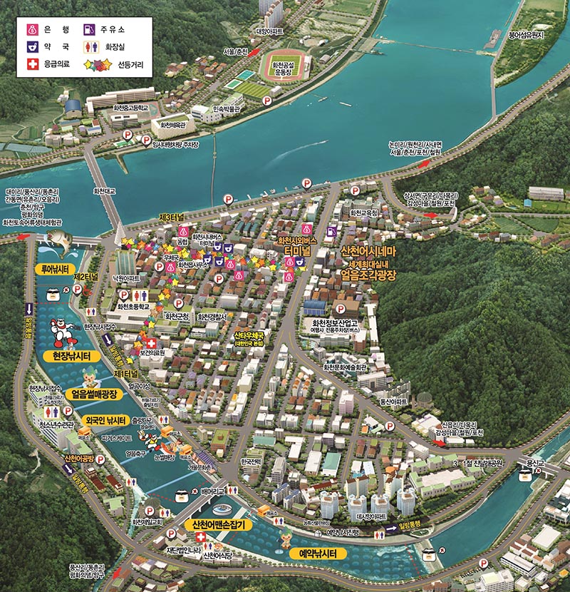 자가용을 타고 가시는 분들은 '화천군청' 또는 '산천어축제'를 검색하거나