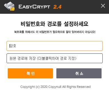 이지크립트의 패스워드가 아주 중요합니다. 분실 시 복호화가 불가능하므로 반드시 기억해야 합니다.